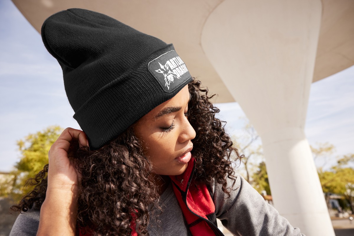 Knitted Beanie with Patch (10cm x 5cm)