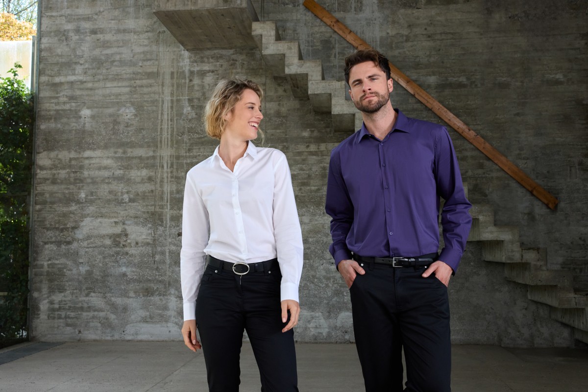 Feine, elastische Popeline-Qualität mit bügelleichter EASY-CARE-Ausrüstung