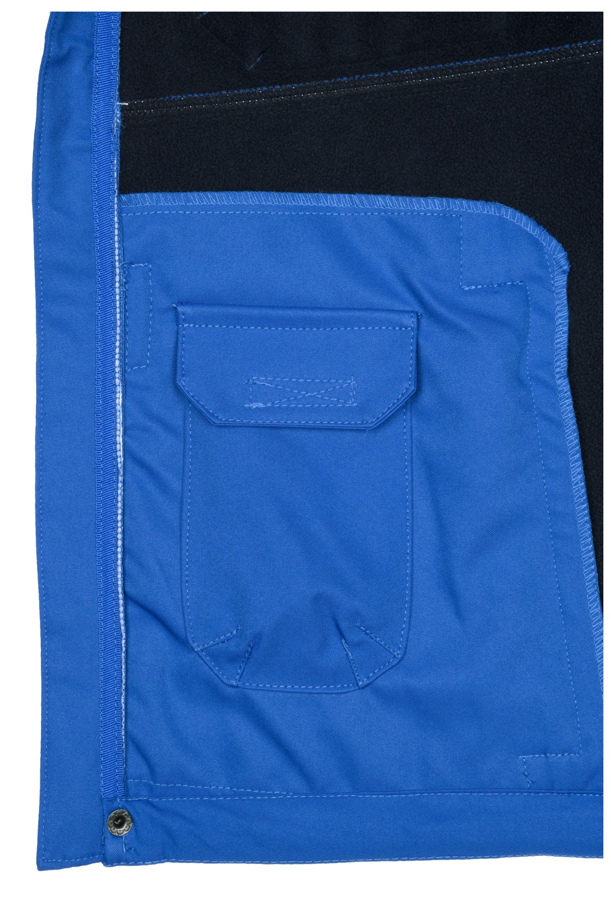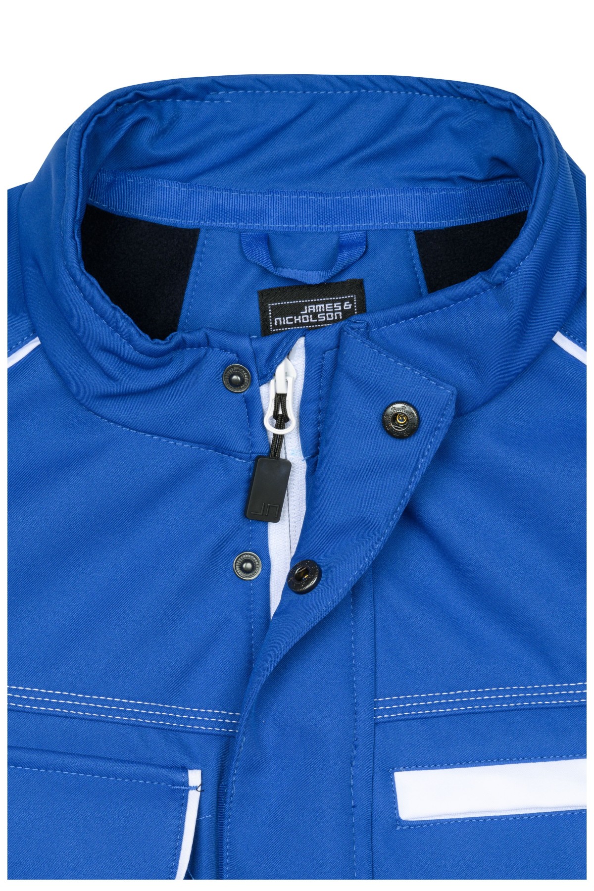 Durchgehend unterlegter Reißverschluss mit Windschutzblende und Kinnschutz