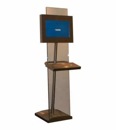 Eine ungewöhnliche Materialanforderung bestimmte dieses Digital Signage Projekt. Zur Anwendung kam das Kiosksystem in einem Hotel sowie beim Maschinenbauer Windmöller & Hölscher aus Lengerich. Das smarte Design aus Glas nimmt sich sehr zurück und passt damit in jedes Entrée und in jeden Wartebereich. Trotz seiner schlichten Eleganz, aber sicherlich bedingt durch die hochwertige Materialkombination aus Glas und Edelstahl ist das Kiosksystem zum echten Hingucker geworden.