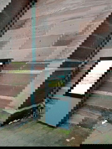 Eine Herausforderung bei der Installation der Outdoor-Stele war, die Medienstation quasi "schwebend" zu realisieren, da keinerlei Fundamentarbeiten auf den geschichtsträchtigen Bodenplatten (und was man darunter gefunden hatte) getätigt werden durften.